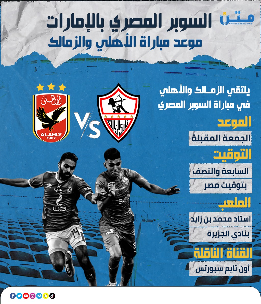 السوبر المصري بالإمارات.. موعد مباراة الأهلي والزمالك (انفوجراف)