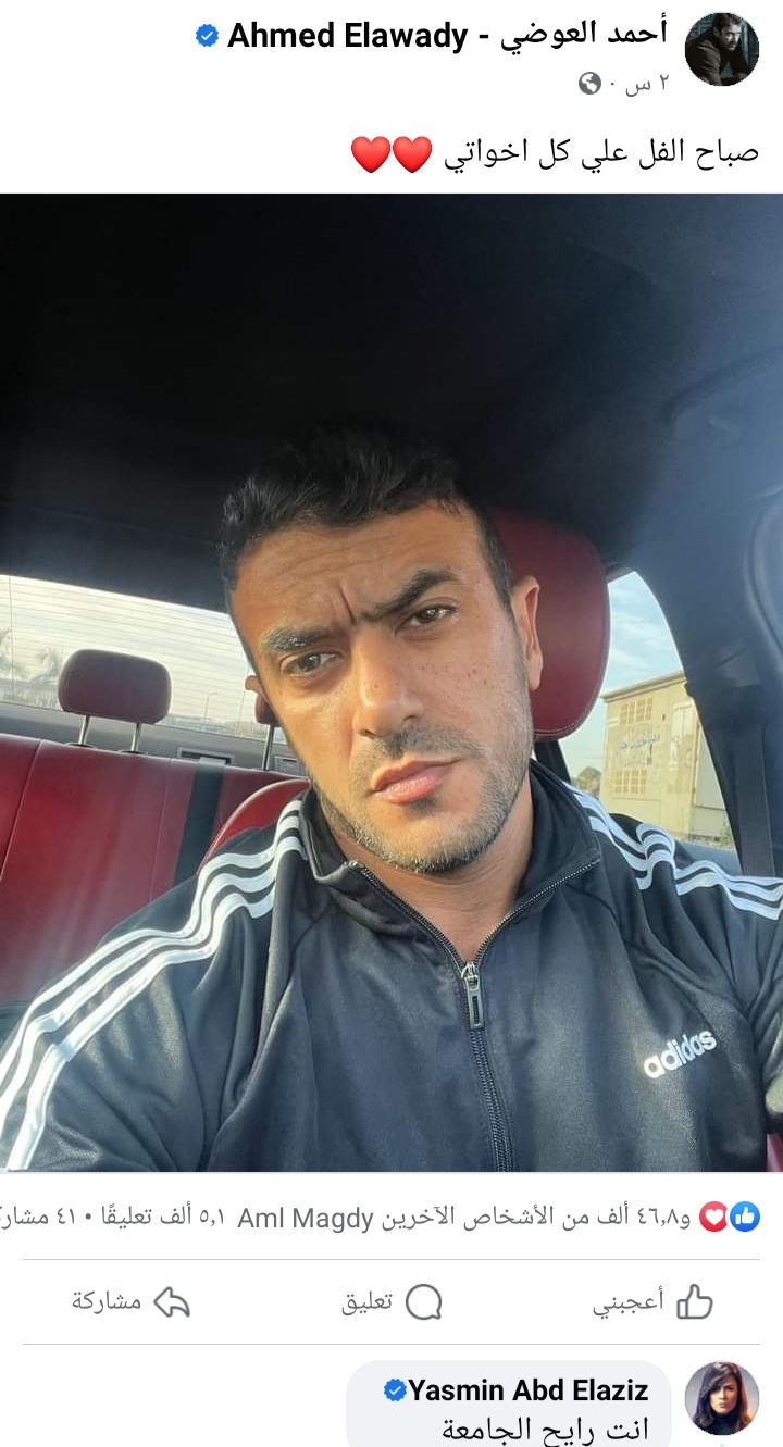 ونشر أحمد العوضي، صورته بعد اللوك، عبر حسابه الشخصي بموقع التواصل الاجتماعي فيسبوك، وعلق قائلا: "صباح الفل على كل أخواتي".
