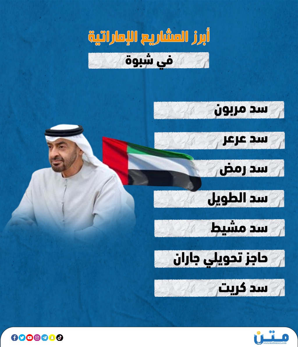 أبرز المشاريع الإماراتية في شبوة (انفوجراف) مشاريع الإمارات الأحد 07/مايو/2023 - 10:30 م 5/7/2023 10:30:54 PM انفوجراف متن محمد حسن شارك طباعة سد مربونسد عرعرسد رمضسد الطويلسد مشيطحاجز تحويلي جارانسد كريت شارك الامارات إنفوجراف شبوة مشاريع