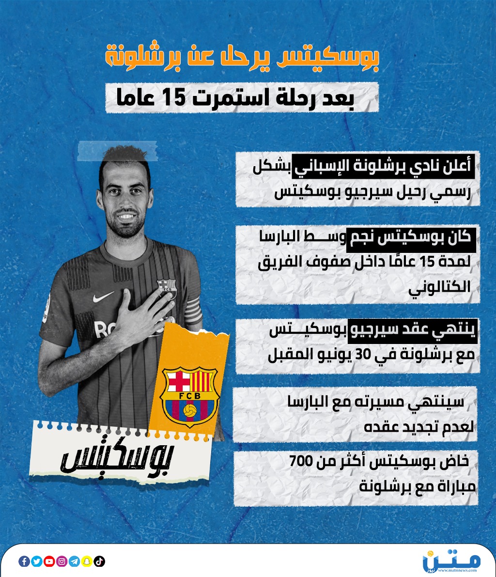 - أعلن نادي برشلونة الإسباني بشكل رسمي رحيل سيرجيو بوسكيتس