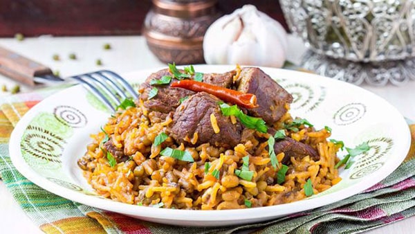 - شوحي الأرز في جميع البهارات وتبليه بالملح ثم ضعي معه قطع اللحم المسلوقة، وصبي فوقه مقدار من مرقة سلق اللحم.