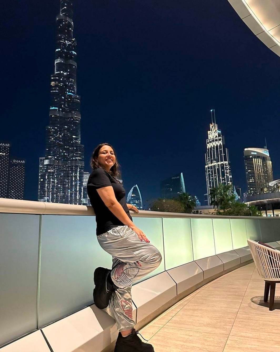 شاركت الفنانة مي كساب، جمهورها بعض الصور الجديدة لها، من أمام برج خليفة، أثناء فترة زيارتها للإمارات العربية المتحدة.