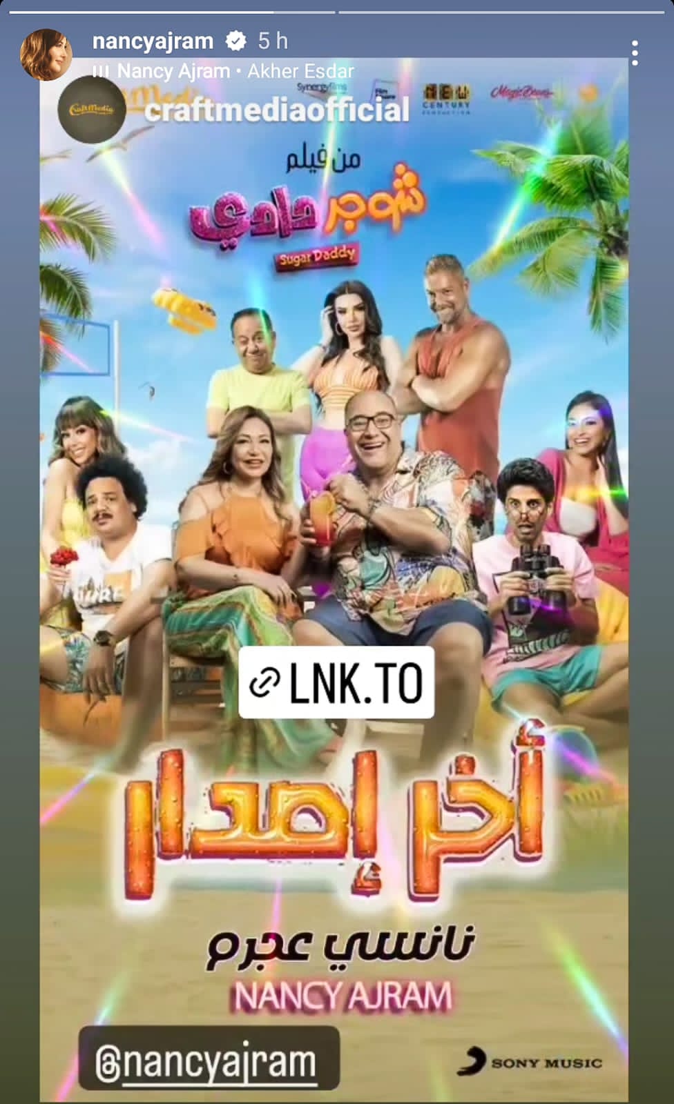 حيث أطلقت الميجا ستار اللبنانية نانسي عجرم كليب "آخر إصدار" الأغنية الدعائية لفيلم "شوجر دادي" للنجوم ليلى علوى وبيومى فؤاد وحمدى الميرغني والذى من المقرر طرحه بدور العرض يوم 24 مايو الجارى.