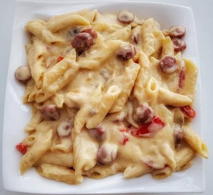 - وأخيرا تسلق المكرونة وتوضع في الوايت صوص ثم يضاف لها خليط السوسيس وتقلب جيدا وتوضع في الأطباق.