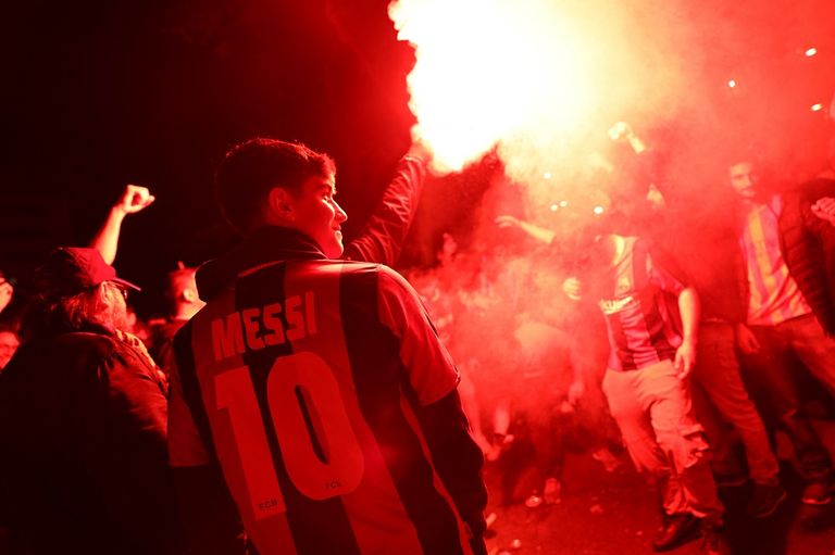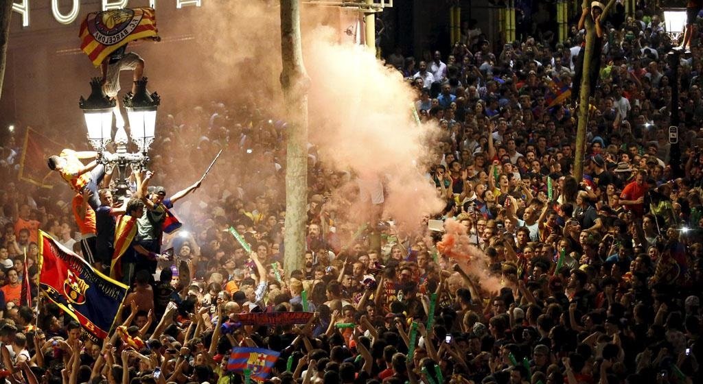 طافت حافلة نادي برشلونة شوارع مدينة كتالونيا للاحتفال بلقب الدوري الاسباني، وانطلقت مسيرة الفريق بعد احتشاد الجماهير أمام مقر النادي وظلت تهتف للنجم الأرجنتيني ليونيل ميسي لاعب باريس سان جيرمان.