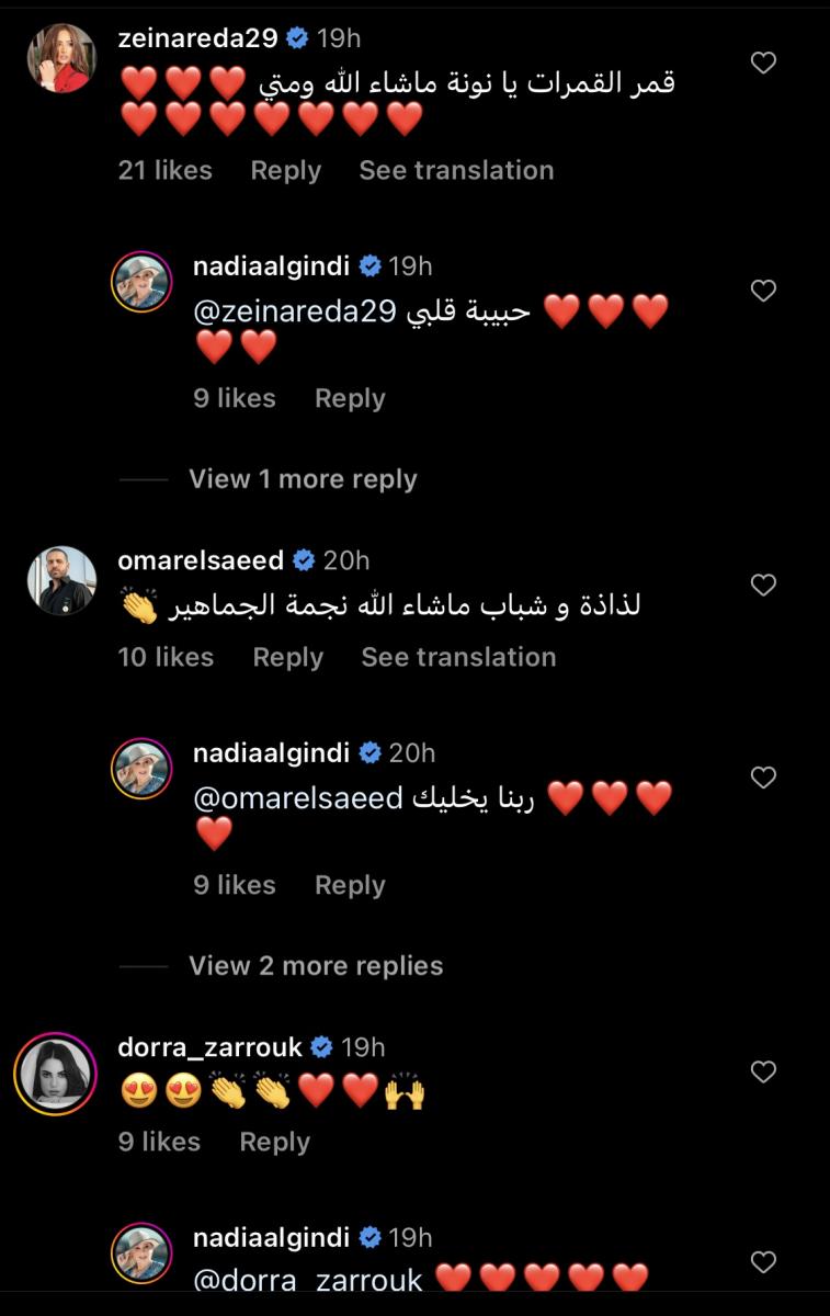 كما شارك عدد من النجوم والمشاهير في التعليق على بوست نادية للتعبير عن حبهم لها، ومن بينهم عمر السعيد وزينة ودرة.