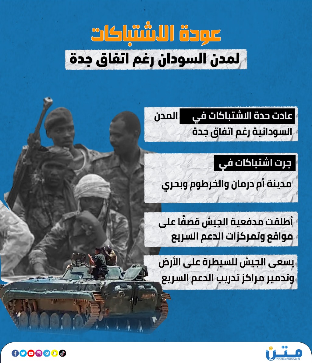 عودة الاشتباكات لمدن السودان رغم اتفاق جدة (انفوجراف)