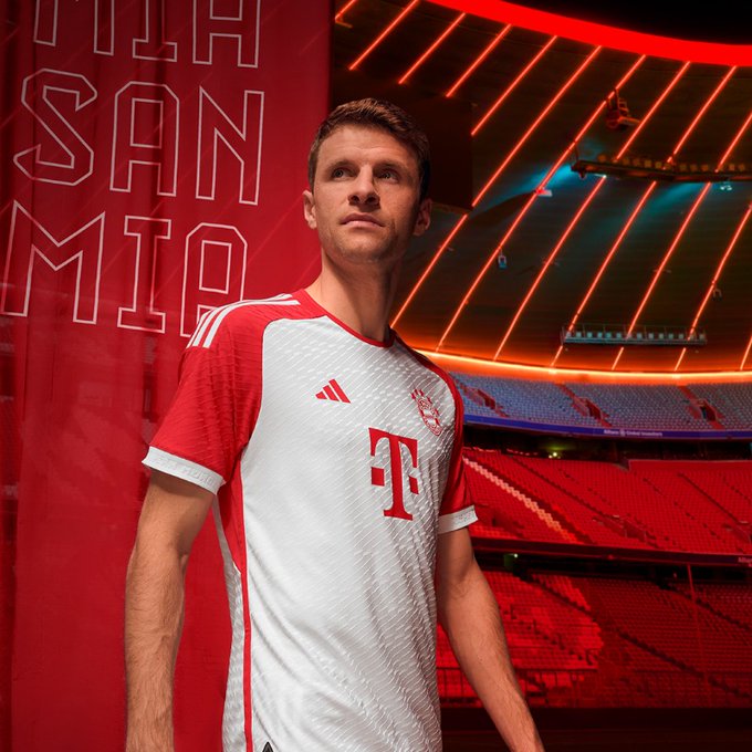 وسيرتدي نادي بايرن ميونخ الموسم القادم قميصه الأساسي مكون من اللون الأبيض مع وجود الكُم الأحمر كزي جديد عن موسم 2023/2024.