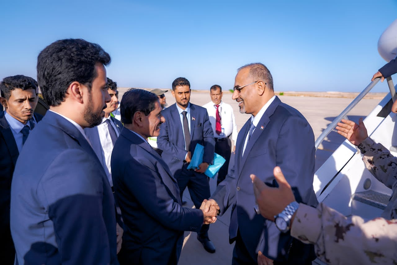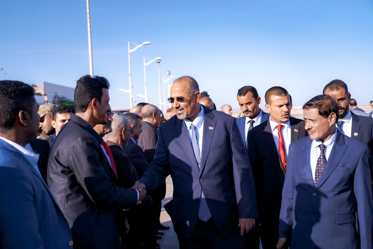 وكان في استقبال الزبيدي لدى وصوله مطار الريان الدولي، نائب رئيس المجلس، رئيس الجمعية الوطنية اللواء أحمد سعيد بن بريك، اللواء فرج البحسني نائب رئيس المجلس الانتقالي، نائب رئيس مجلس القيادة الرئاسي، ومحمد الغيثي عضو هيئة الرئاسة، رئيس هيئة التشاور والمصالحة التابعة لمجلس القيادة الرئاسي، وعدد من القيادات العسكرية والأمنية، والقيادات المحلية للمجلس، والسلطة المحلية.