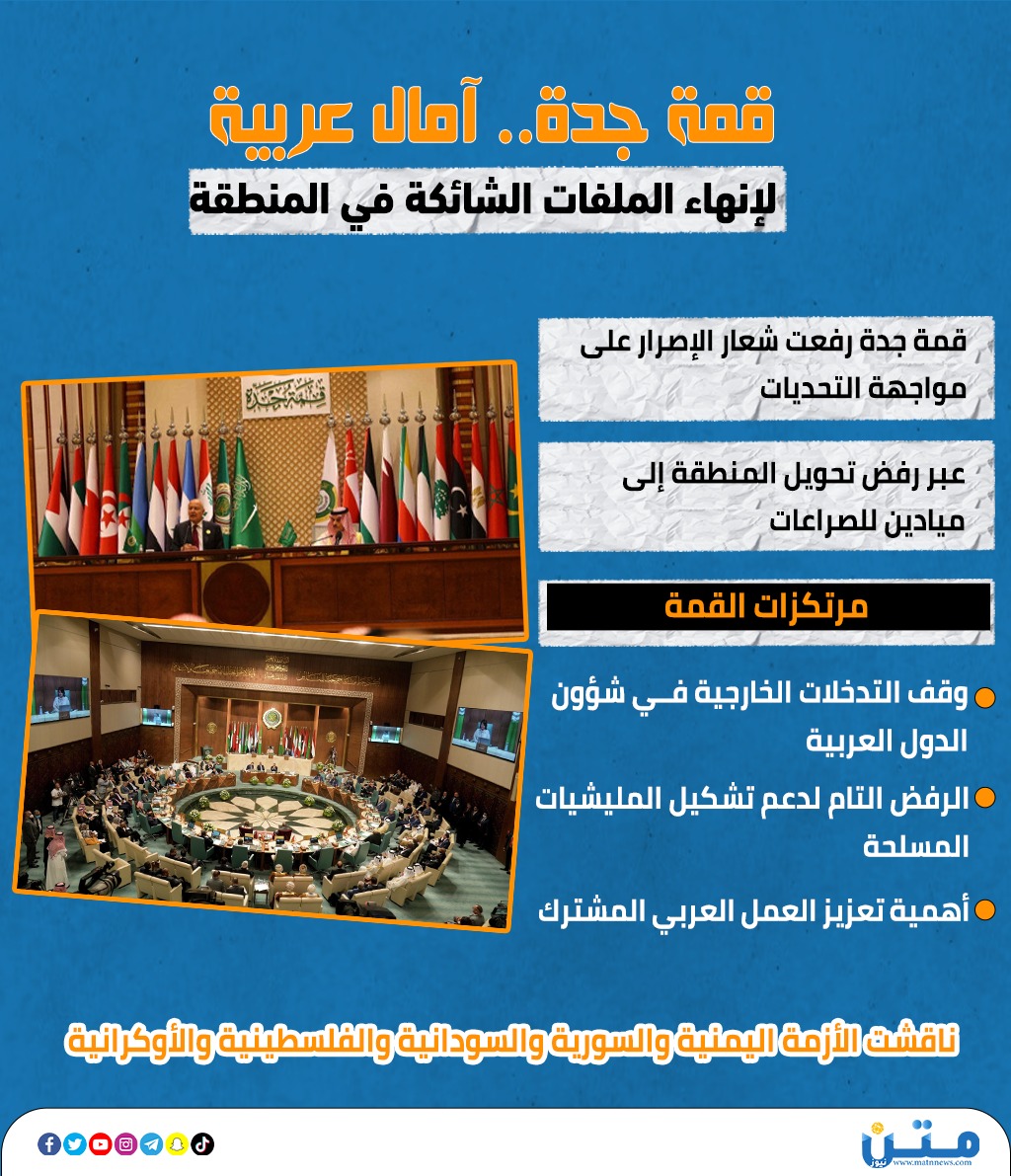 قمة جدة.. آمال عربية لإنهاء الملفات الشائكة في المنطقة (إنفوجراف)