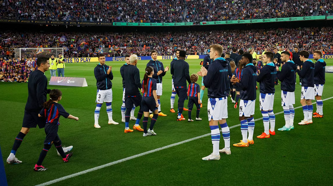 ونظم فريق ريال سوسيداد ممرا شرفيا للاعبي برشلونة بعد تتويجهم بلقب الدوري الإسباني للمرة الـ27 في تاريخهم.