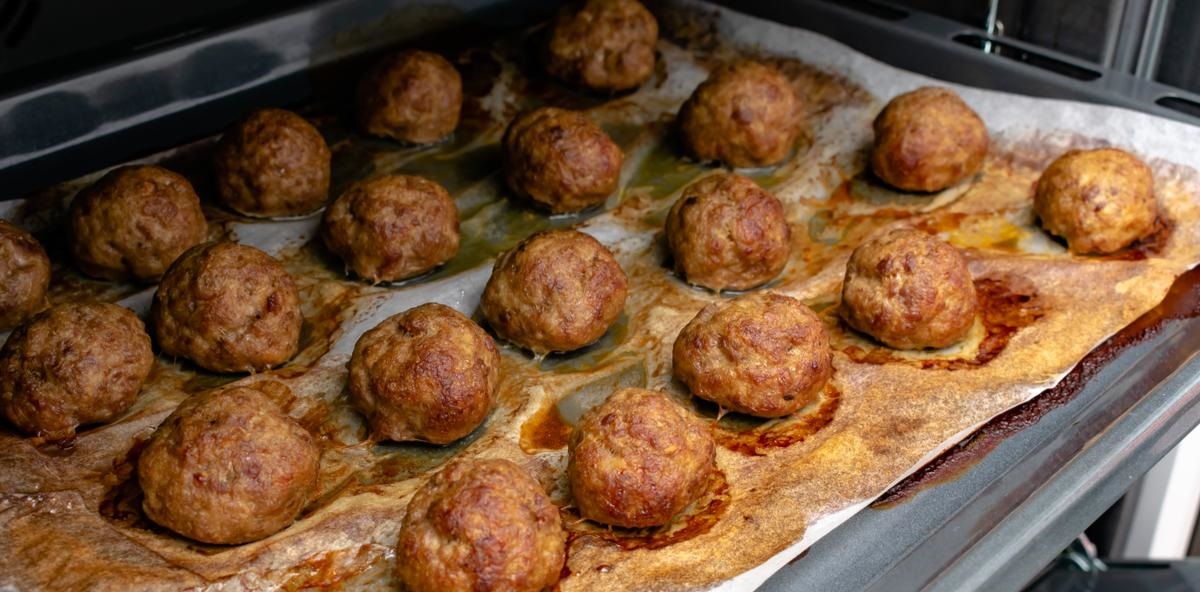 - رصي كرات اللحم في الصينية، ثم ضعيها في الفرن الحامي مسبقا على درجة حرارة 180 درجة.