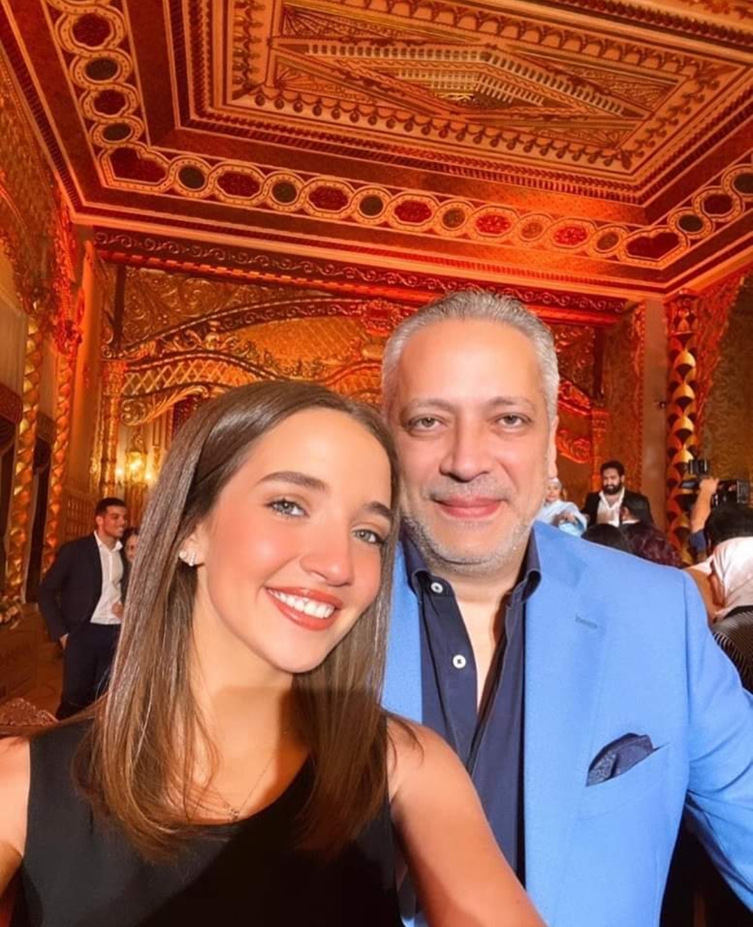 تداول نشطاء مواقع التواصل الاجتماعي فيس بوك وتويتر صورة لنور ابنة الإعلامي الشهير تامر أمين في أول ظهور رسمي لها مع والدها في أحد الاحتفالات.