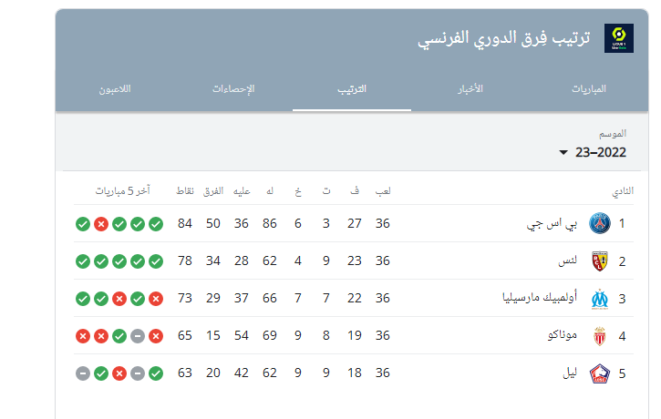 بعد مبارة باريس سان جيرمان.. ما هو ترتريب الدوري الفرنسي 2023؟