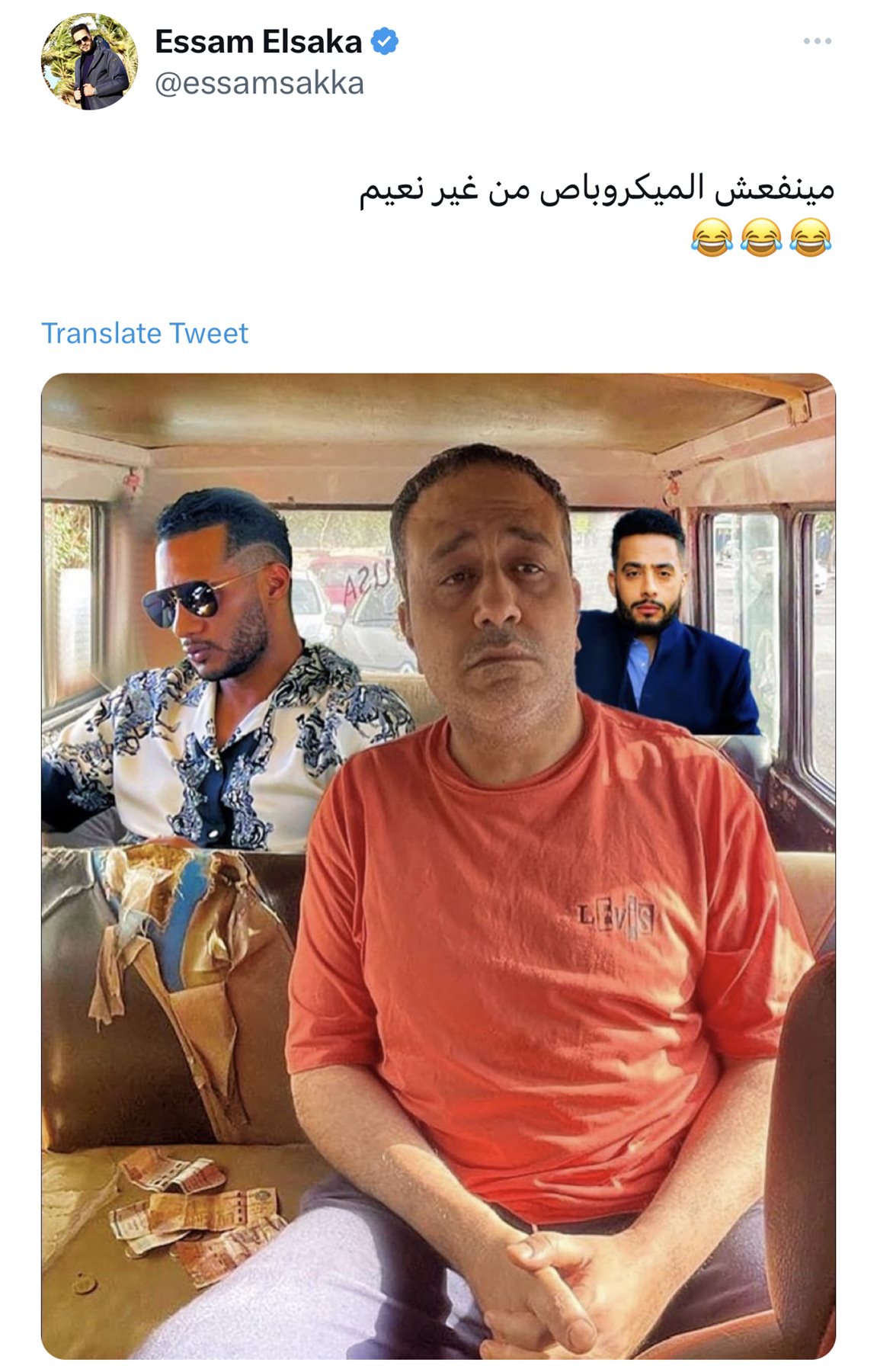 وعلق عصام السقا علي الصورة، كاتبًا: “مينفعش الميكروباص من غير نعيم”.
