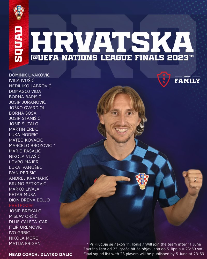 أعلن زالاتكو داليتش المدير الفني لمنتخب كرواتيا، القائمة الرسمية التي ستخوض مباراة هولندا في نصف نهائي بطولة دوري الأمم الأوروبية.