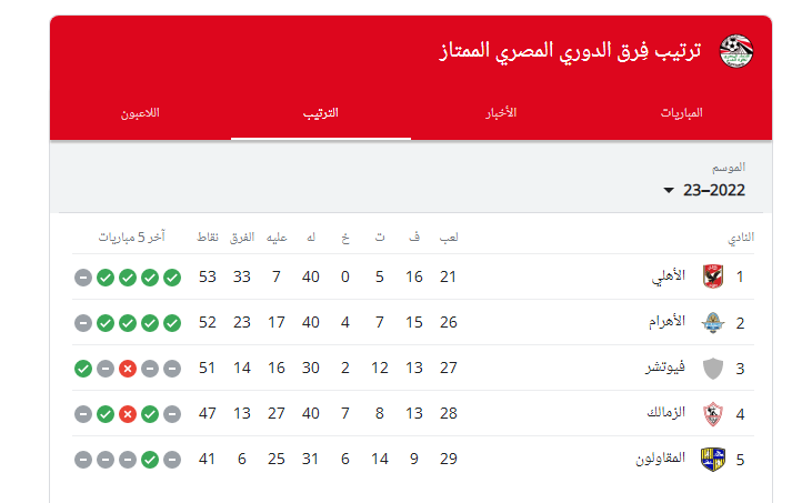 بعد مبارة المقاولون.. ما هو ترتيب الدوري المصري الممتاز 2023؟