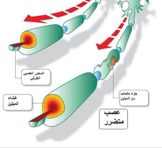 - من حيث المسببات، التصلب المتعدد ينتج عن اضطراب في الجهاز المناعي يؤدي إلى تلف الميلين، وهو الغلاف الدهني المحيط بالألياف العصبية.