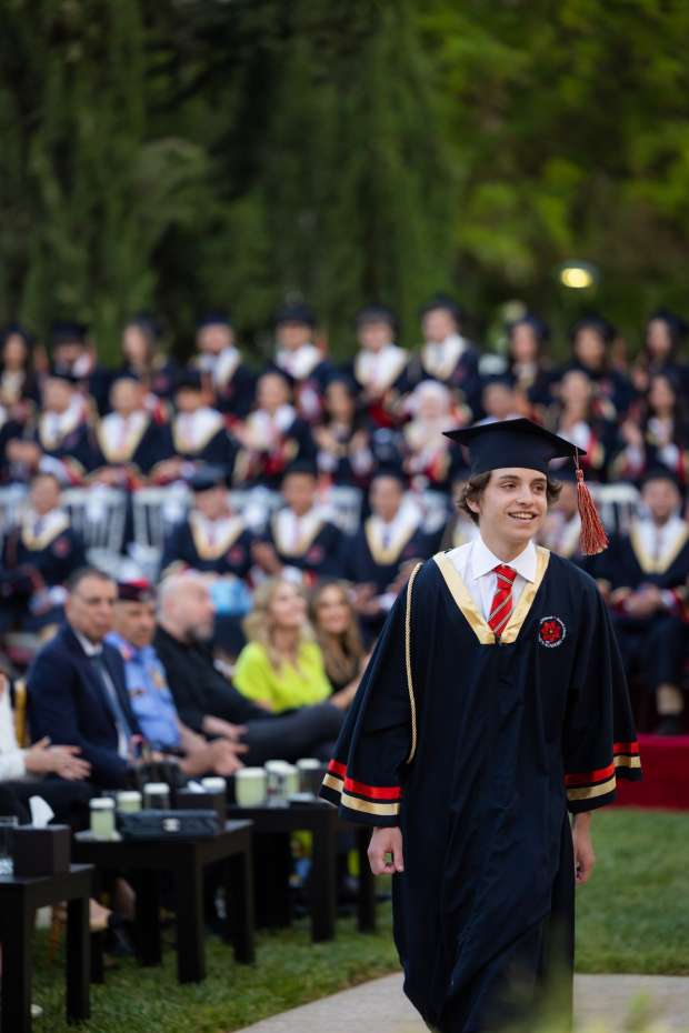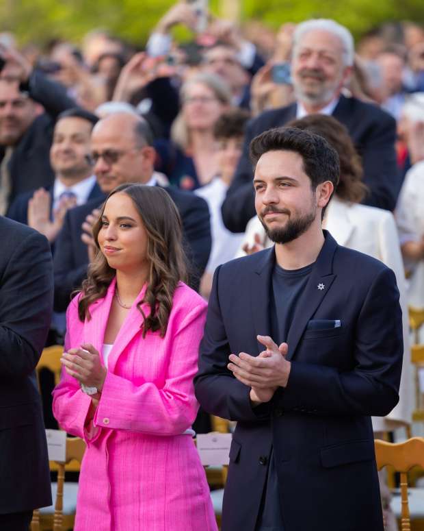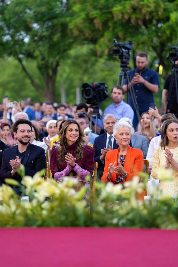 حيث كتبت الصفحة الرسمية للملكة رانيا جلالة الملك عبدالله الثاني وجلالة الملكة رانيا العبدالله، وسمو الأمير الحسين بن عبدالله الثاني، ولي العهد، وسمو الأميرة إيمان بنت عبدالله الثاني والسيد جميل ترميوتس والأميرة سلمى بنت عبدالله الثاني خلال حفل تخريج الأمير هاشم بن عبدالله الثاني من المدرسة، بالأردن / 24 أيار 2023.