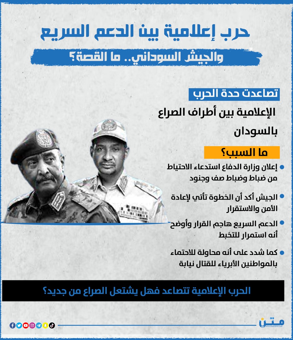 حرب إعلامية بين الدعم السريع والجيش السوداني.. ما القصة؟ (انفوجراف)