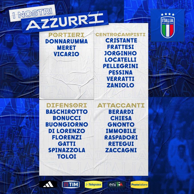 وجاءت قائمة منتخب إيطاليا كالتالي: