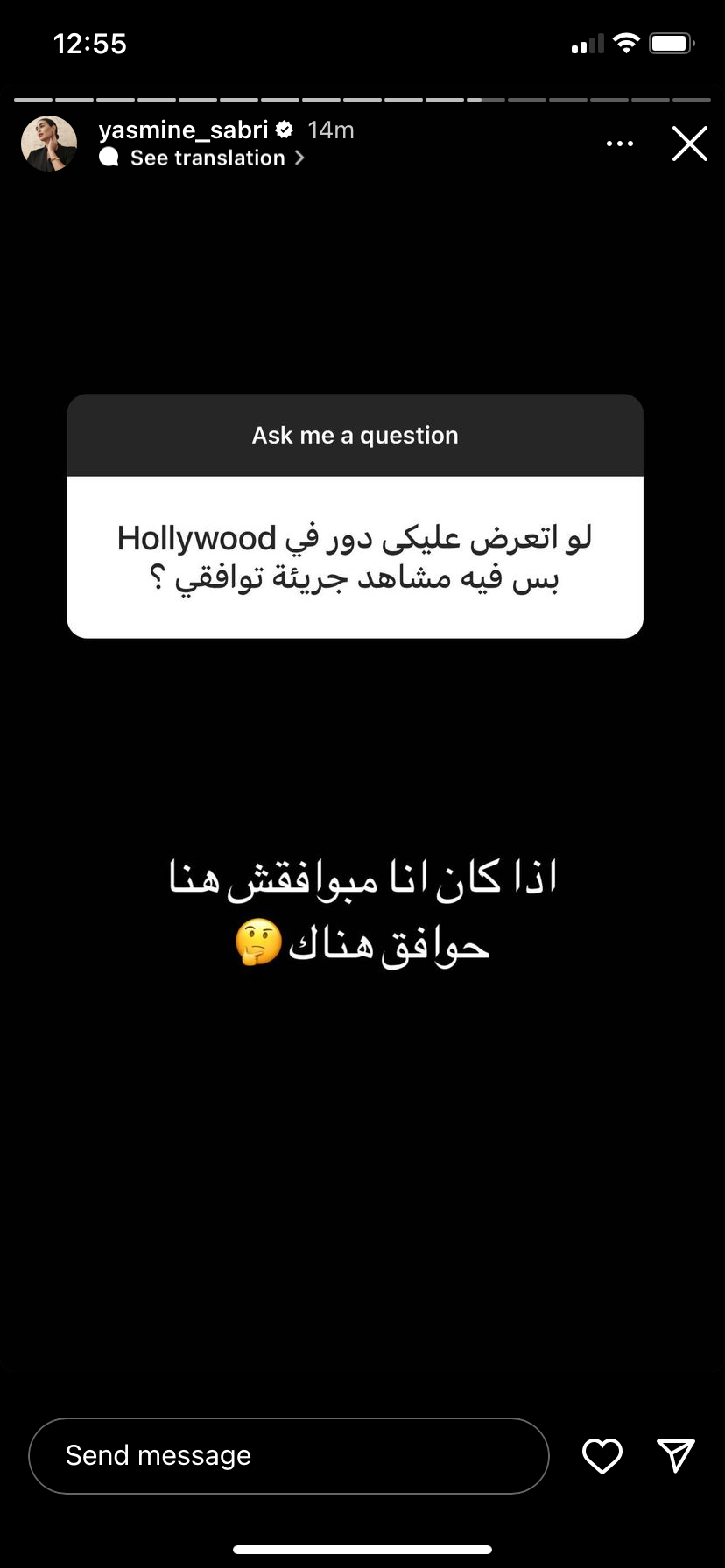 وجاء تصريح ياسمين صبري، خلال تفاعلها مع متابعيها عبر حسابها في تطبيق "إنستجرام" حيث سألها أحد المتابعين، هل توافقين على تقديم مشاهد إغراء في هوليوود؟ وأجابت ياسمين بشكل قاطع قائلة: لم أقدمها في مصر.. فهل أقدمها في هوليوود؟