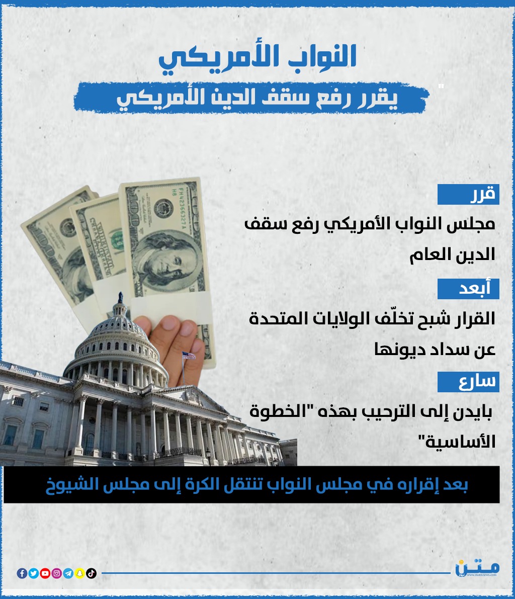 - قرر مجلس النواب الأمريكي رفع سقف الدين العام