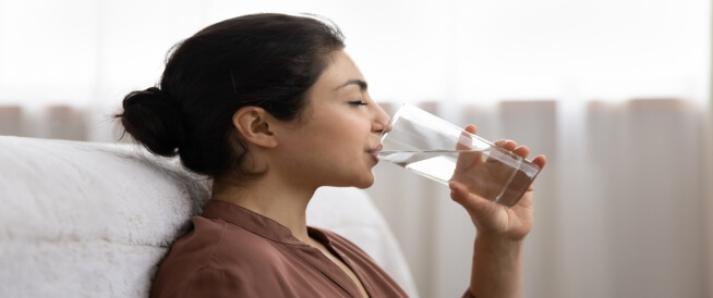 يجب تناول الماء بكميات كافية، وينصح بشرب 8 أكواب من الماء يوميًا، ويجب الابتعاد عن المشروبات الكحولية والمنبهات.