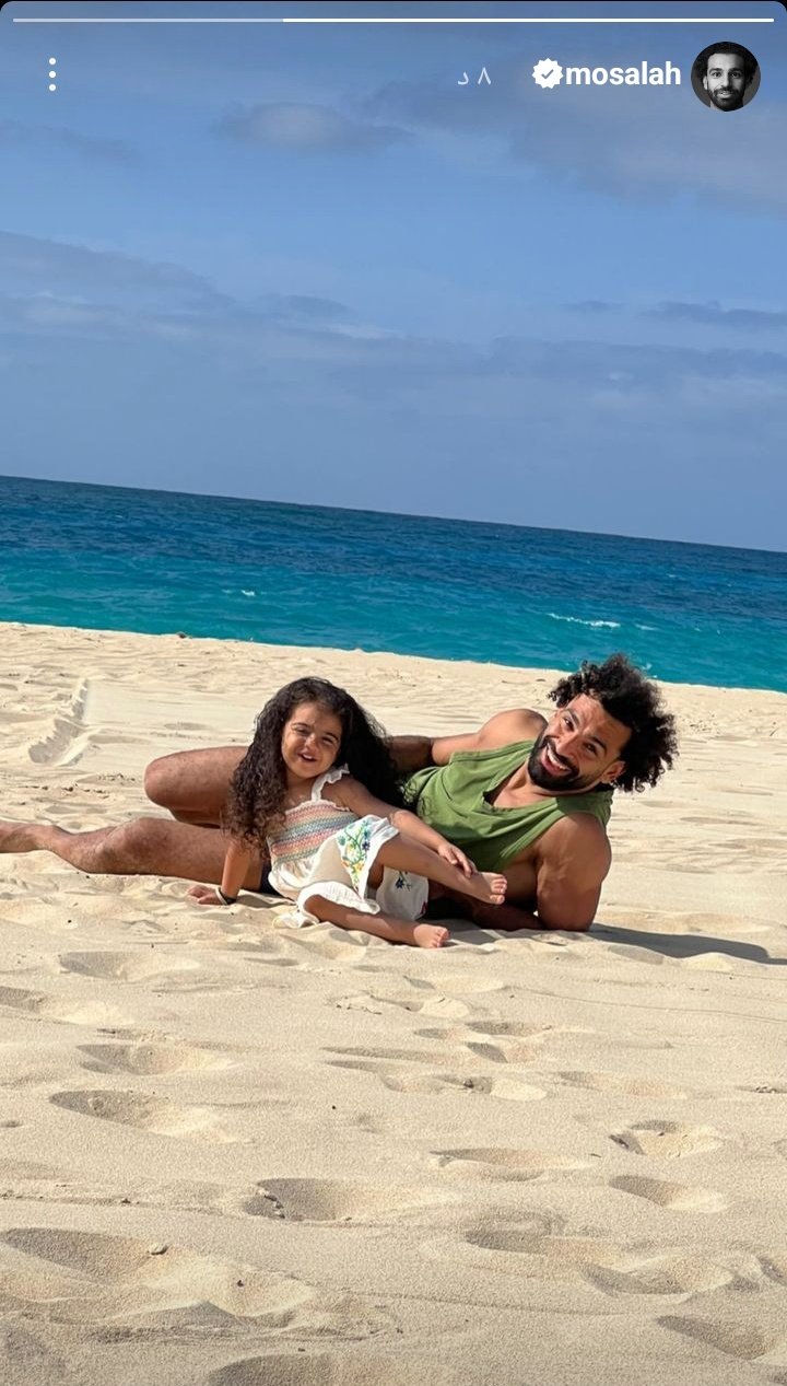 ونشر محمد صلاح صورا على شاطئ البحر مع نجلته كيان عبر ستوري خاص به على انستجرام، ما يعكس استمتاع اللاعب بإجازته الصيفية، عقب انتهاء الموسم مع ليفربول.