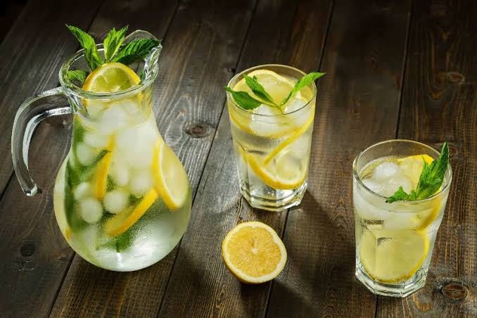 - الماء بالليمون، حيث يضاف عصير الليمون إلى الماء البارد لإضفاء نكهة منعشة وترطيب الجسم.