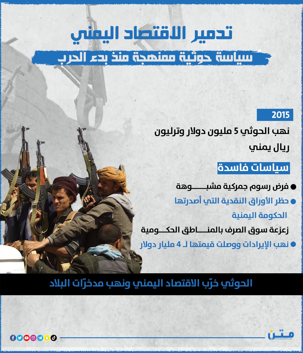 تدمير الاقتصاد اليمني.. سياسة حوثية ممنهجة منذ بدء الحرب (انفوجراف)