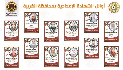 وجاءت أوائل نتيجة الشهادة الإعدادية محافظة الغربية 2023 كالتالي: