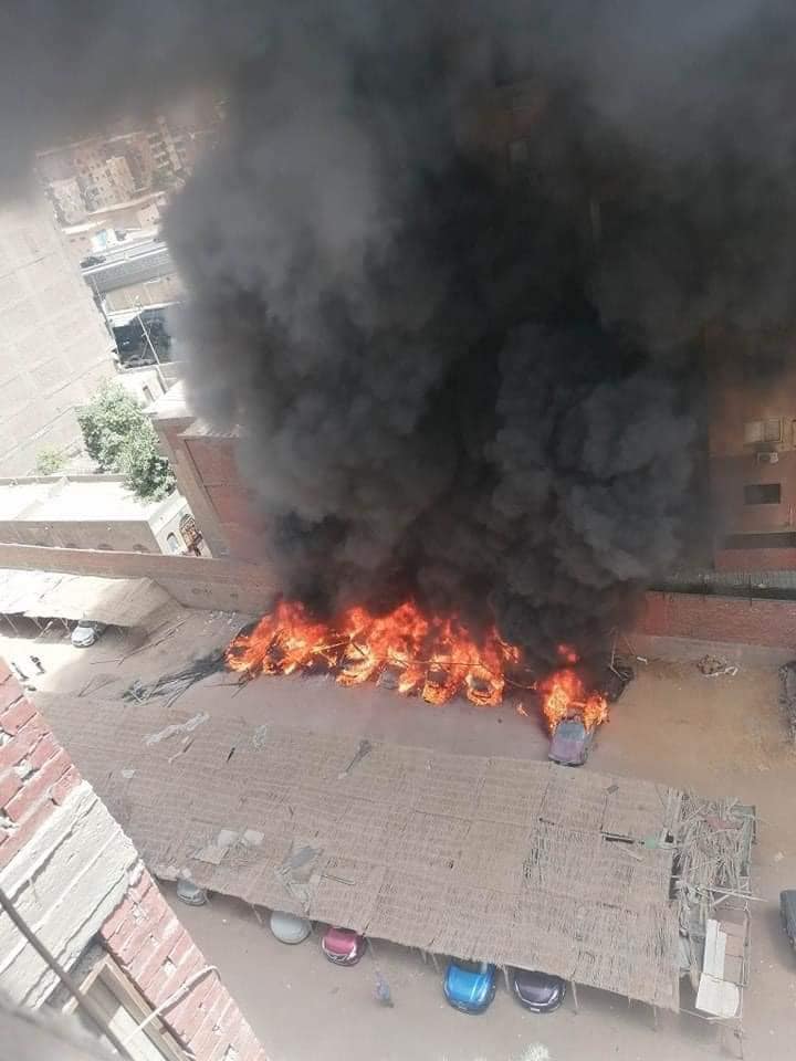 تفحم 7 سيارات في حريق بجراج بمنطقة ترسا بالجيزة