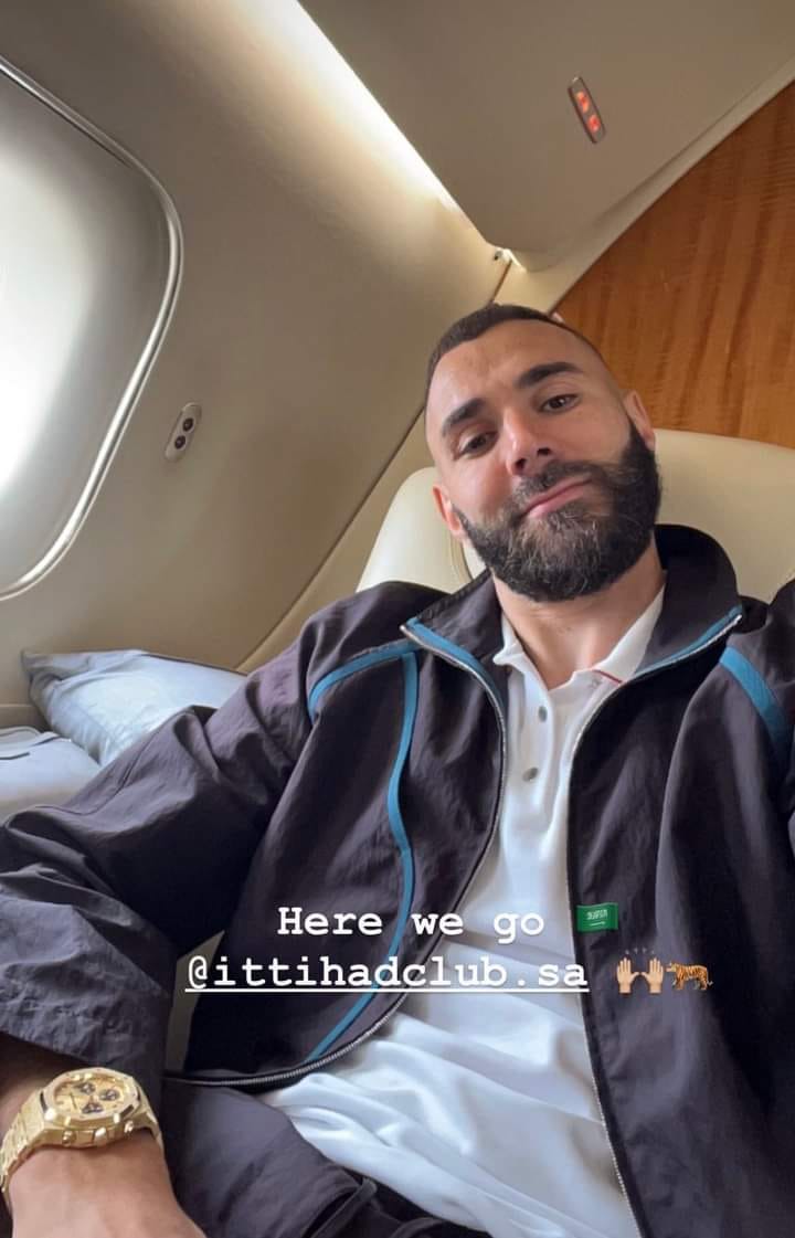 ونشر الحساب الرسمي لنادي الاتحاد، صور كريم بنزيما وهو يستقل طائرته الخاصة المتجه نحو جدة، وكتب عليها: "نجمنا الجديد كريم بنزيما في طريقه إلى جدة. مستعدين يا أبطال الدوري الاستثنائي العالمي؟".