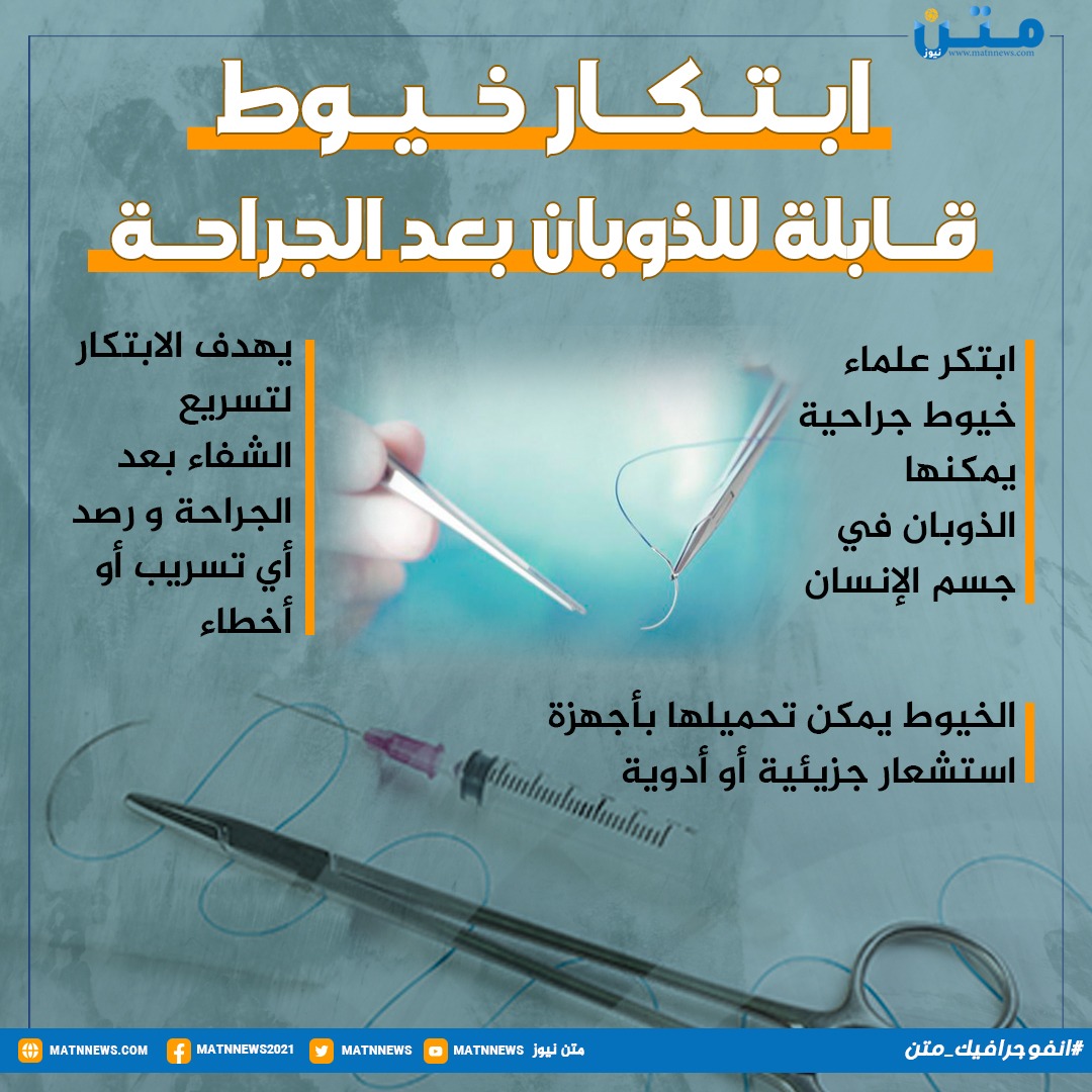 ابتكار خيوط قابلة للذوبان بعد الجراحة (إنفوجراف)