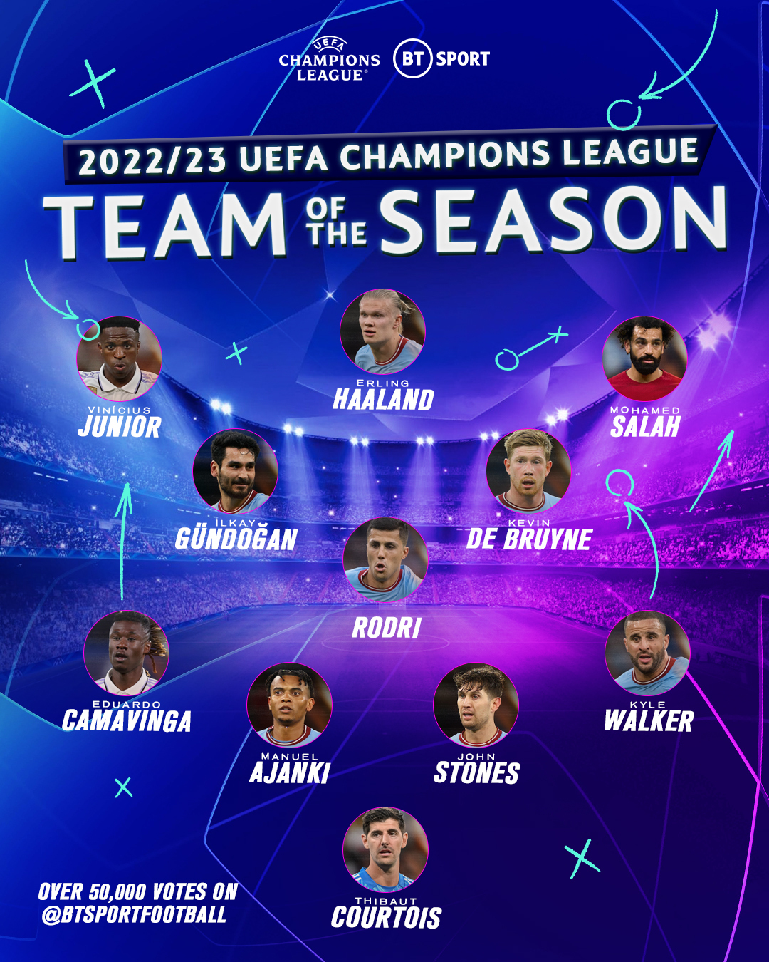 وجاء التشكيل المثالي لدوري أبطال أوروبا 2023 كالتالي: