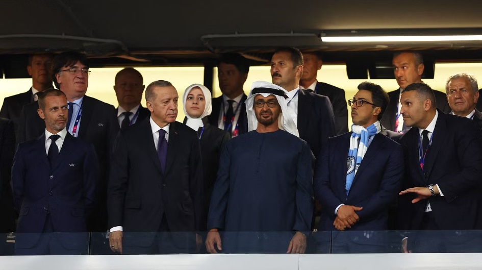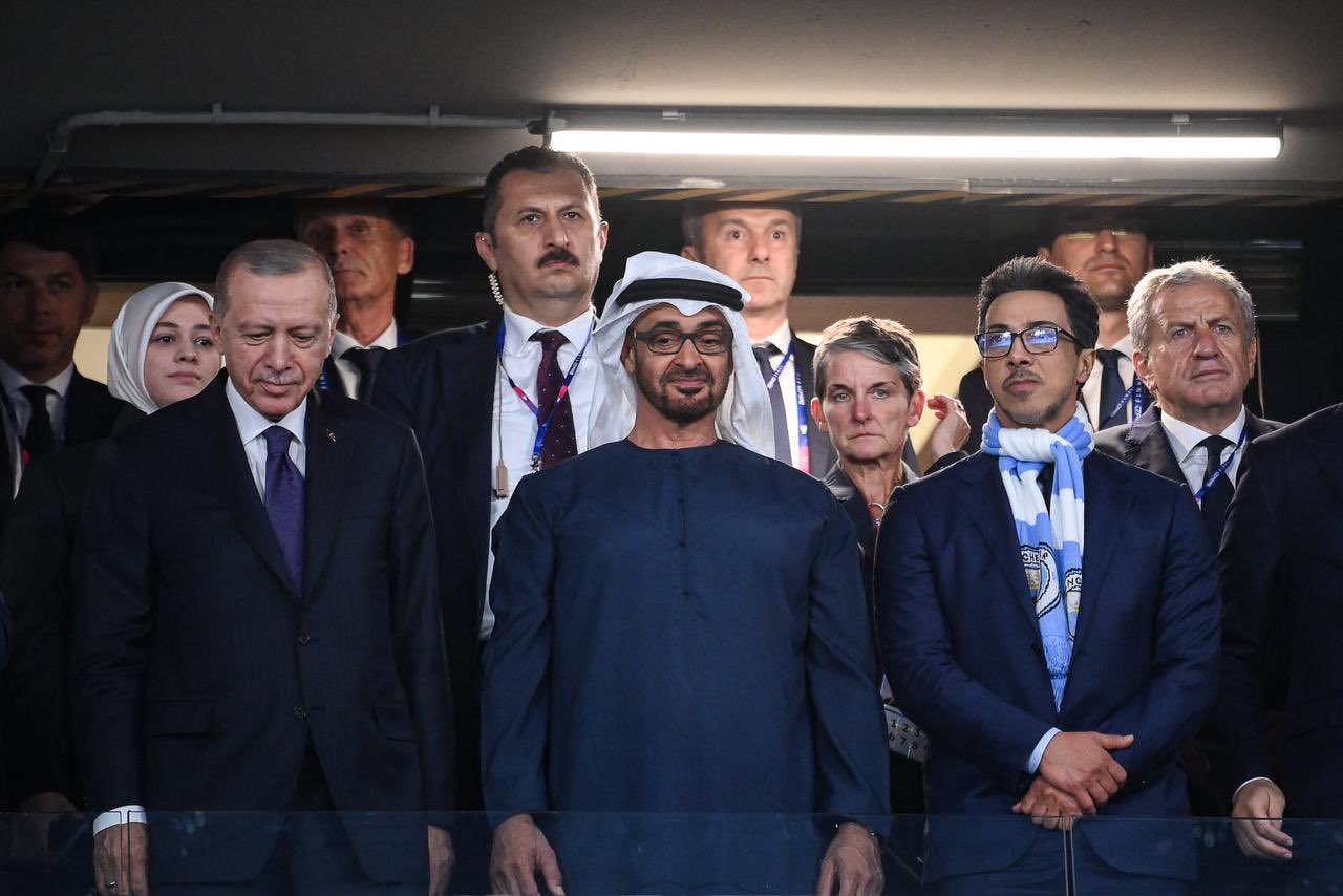 حرص الشيخ محمد بن زايد آل نهيان رئيس دولة الإمارات العربية المتحدة، والرئيس التركي رجب طيب أردوغان، والشيخ منصور بن زايد آل نهيان، نائب رئيس دولة الإمارات، نائب رئيس مجلس الوزراء، وزير ديوان الرئاسة، ومالك نادي مانشستر سيتي، على حضور نهائي دوري أبطال أوروبا، بين فريقي إنتر ميلان ومانشستر سيتي، المقام على ملعب "أتاتورك" بمدينة إسطنبول.