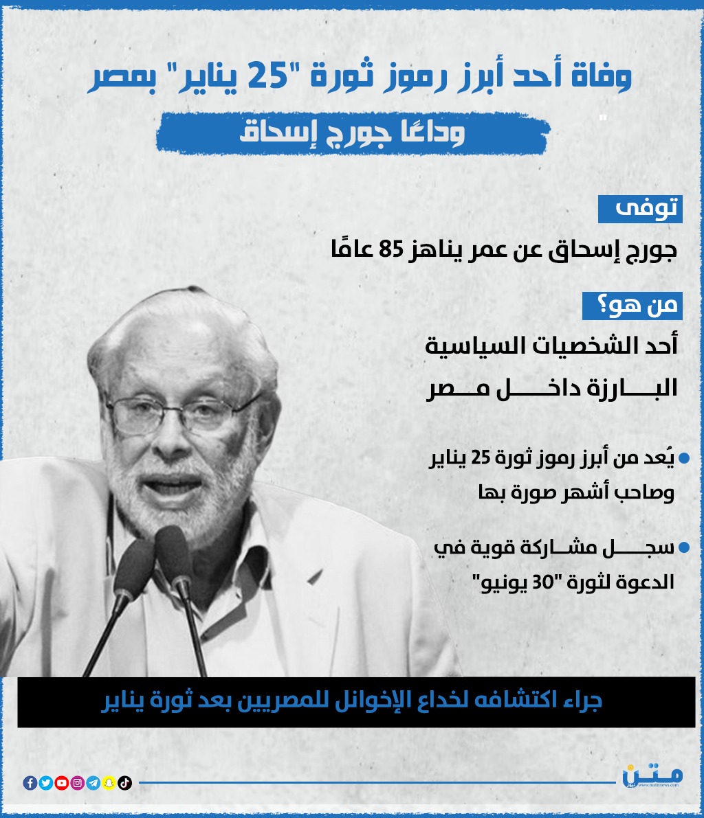 وفاة أحد أبرز رموز ثورة "25 يناير" بمصر.. وداعًا جورج إسحاق (انفوجراف)