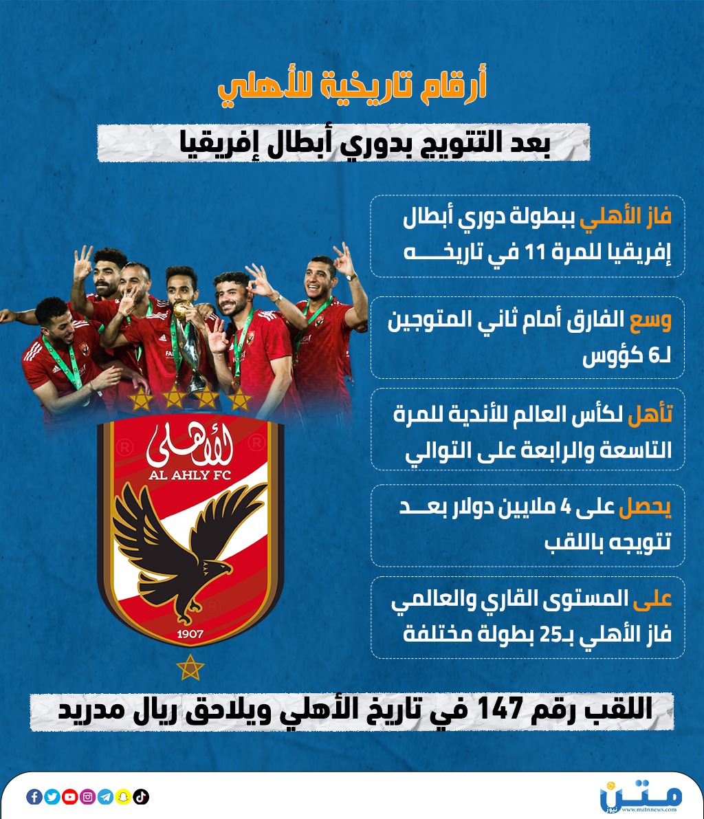 أرقام تاريخية للأهلي بعد التتويج بدوري أبطال إفريقيا (انفوجراف)