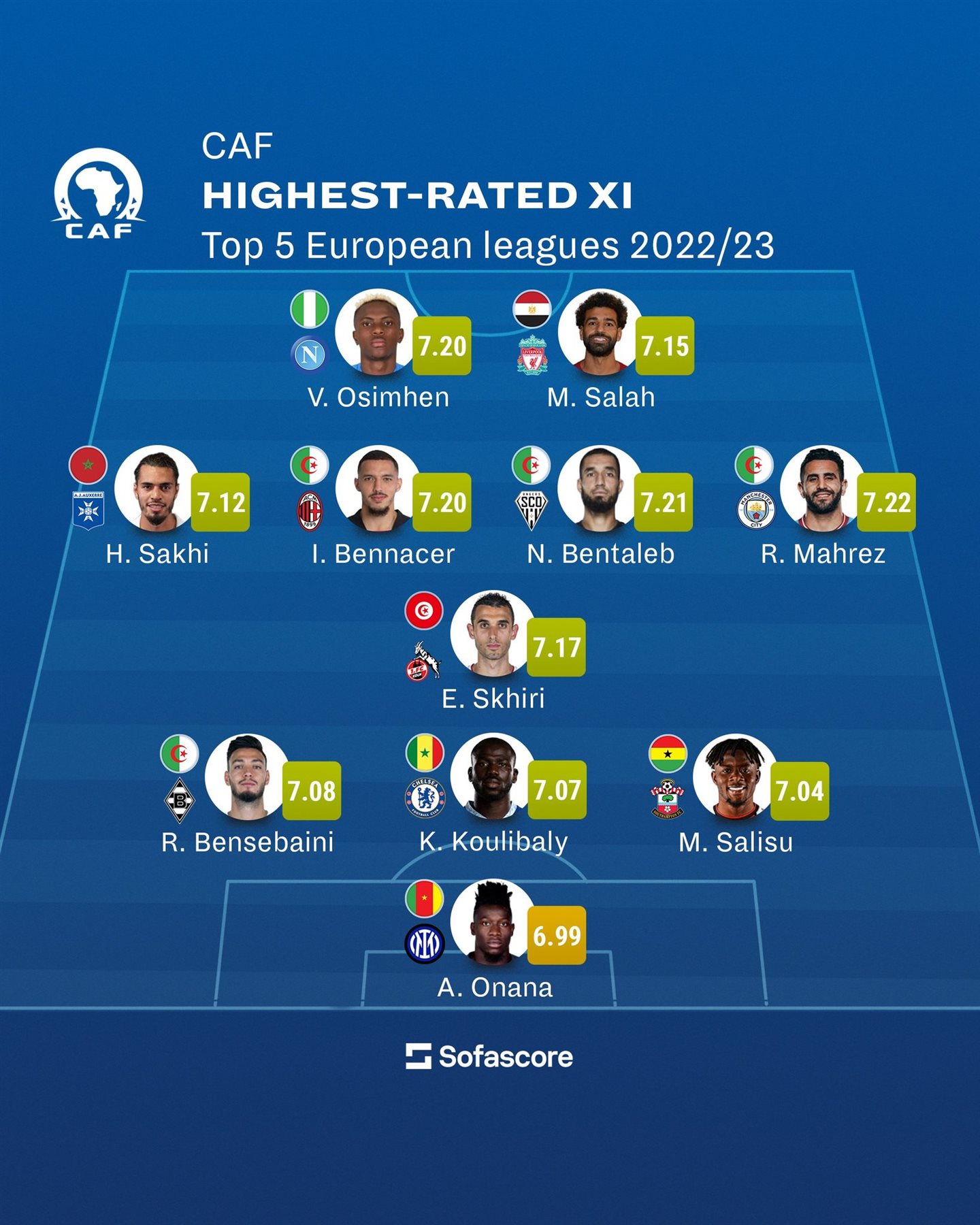 وجاء التشكيل المثالي للأفارقة في الدوريات الأوروبية الخمس الكبرى كالتالي:
