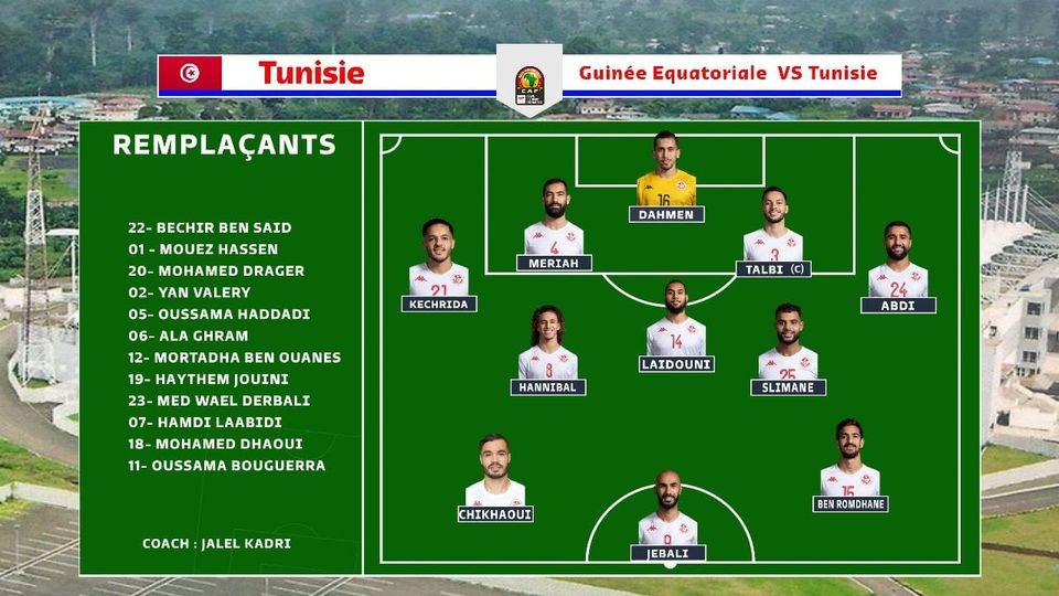ويخوض منتخب تونس المباراة بالتشكيل التالي: