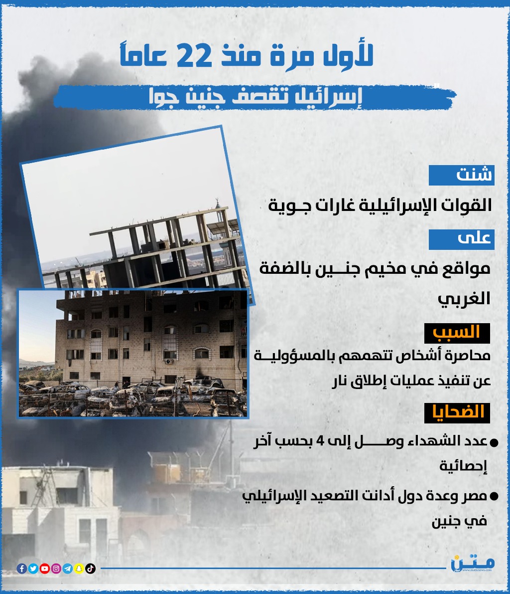 لأول مرة منذ 22 عامًا.. إسرائيل تقصف جنين جوًا (انفوجراف)