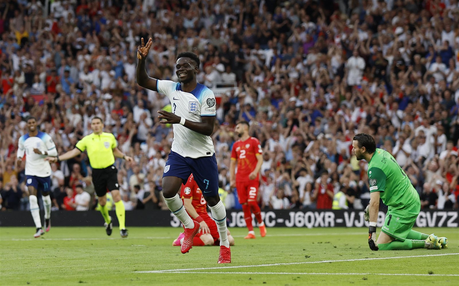 وواصل بوكايو ساكا، تألقه أمام مقدونيا الشمالية وسجل "هاتريك" في الدقيقة 51.