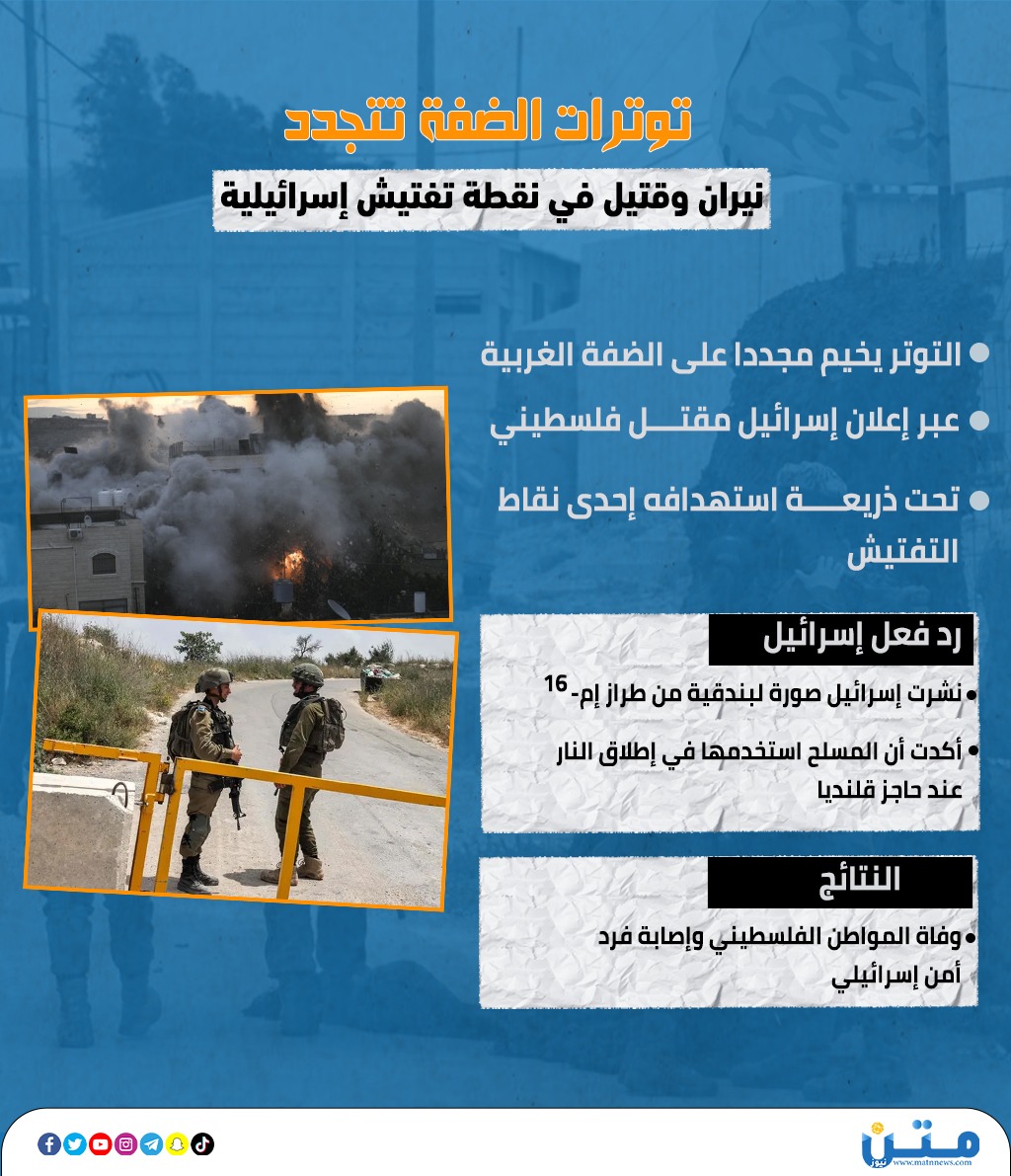 توترات الضفة تتجدد.. نيران وقتيل في نقطة تفتيش إسرائيلية (انفوجراف)
