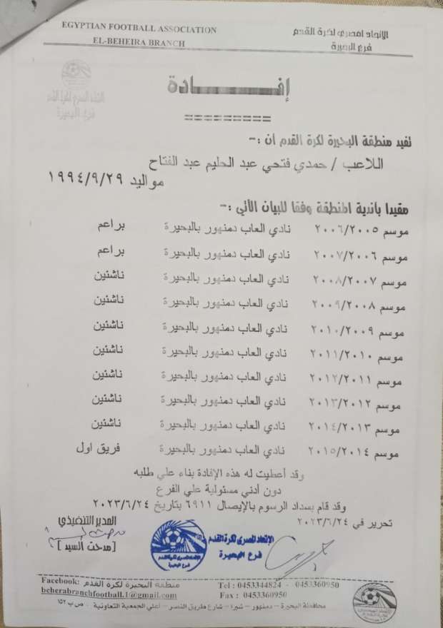واختتم أمين صندوق النادي تصريحاته: "بدورنا بعتنا لكل الأطراف لحفظ حقوق دمنهور في الرعاية، وياريت الناس تهدى علشان تكمل بخير، وبطمنكم إحنا مش واقفين على الفلوس دي، لكن مكملين لحفظ حقوق النادي".