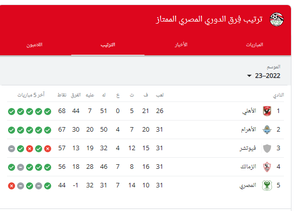 ترتيب الدوري المصري 2023