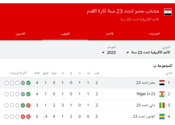 ترتيب مجموعة منتخب مصر الأولمبي في كأس أمم إفريقيا تحت 23 عامًا