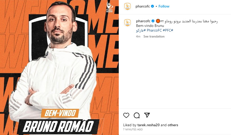 ونشر النادي السكندري عبر حسابه الرسمي على موقع التواصل الاجتماعي «إنستجرام»: «رحبوا معنا بمدربنا الجديد برونو روماو».