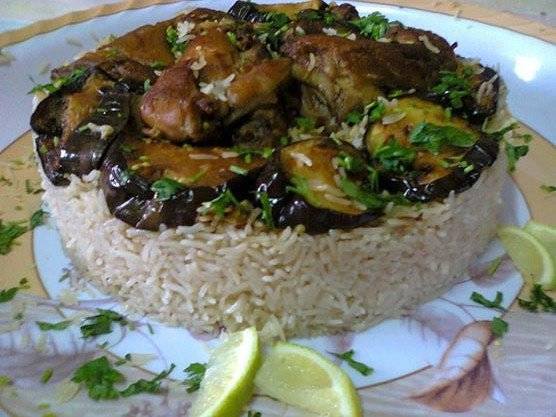 طريقة عمل المقلوبة بالدجاج والباذنجان