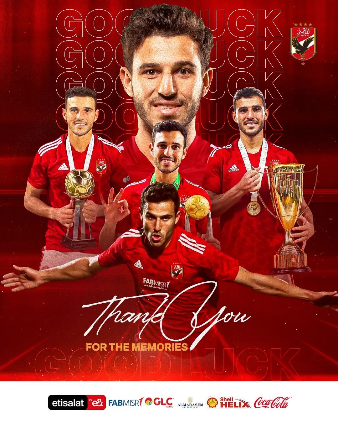 ونشرت صفحة النادي الأهلي الرسمية على موقع التواصل الاجتماعي "فيسبوك"، صور للاعب حمدي فتحي، وكتبت: "شكرا على كل شيء، حمدي".